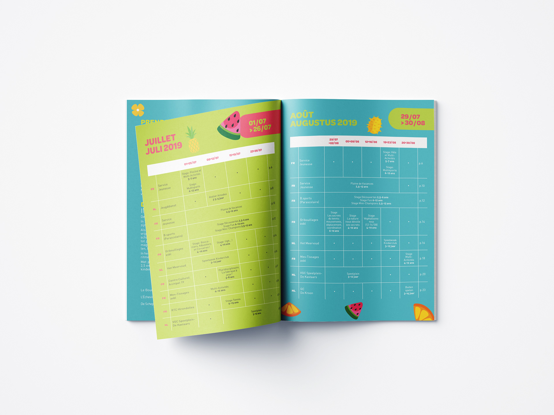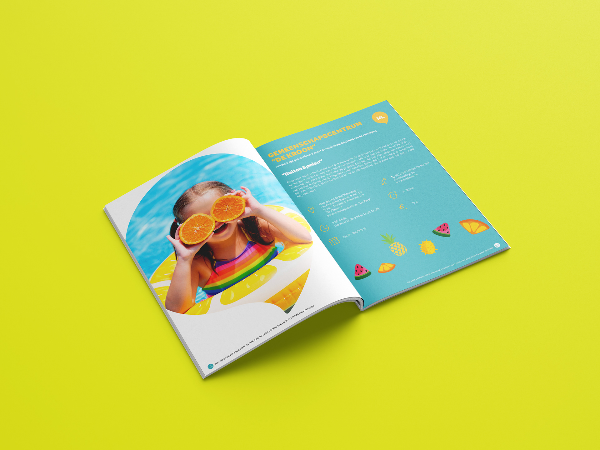 Création de brochures pour différents stages et événements qui ont lieu dans la commune de Berchem-Saint-Agathe.